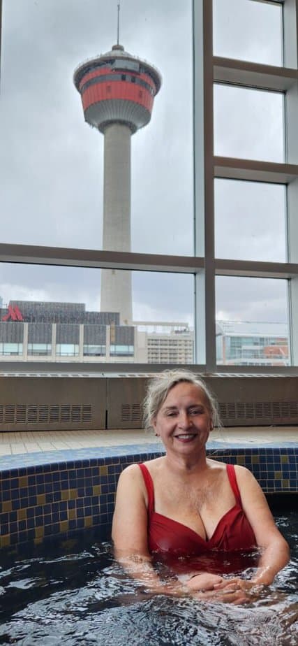 Hyatt Regency is one of the few hotels downtown with a pool, and the only one with this view of the Calgary Tower, making it very family friendly.