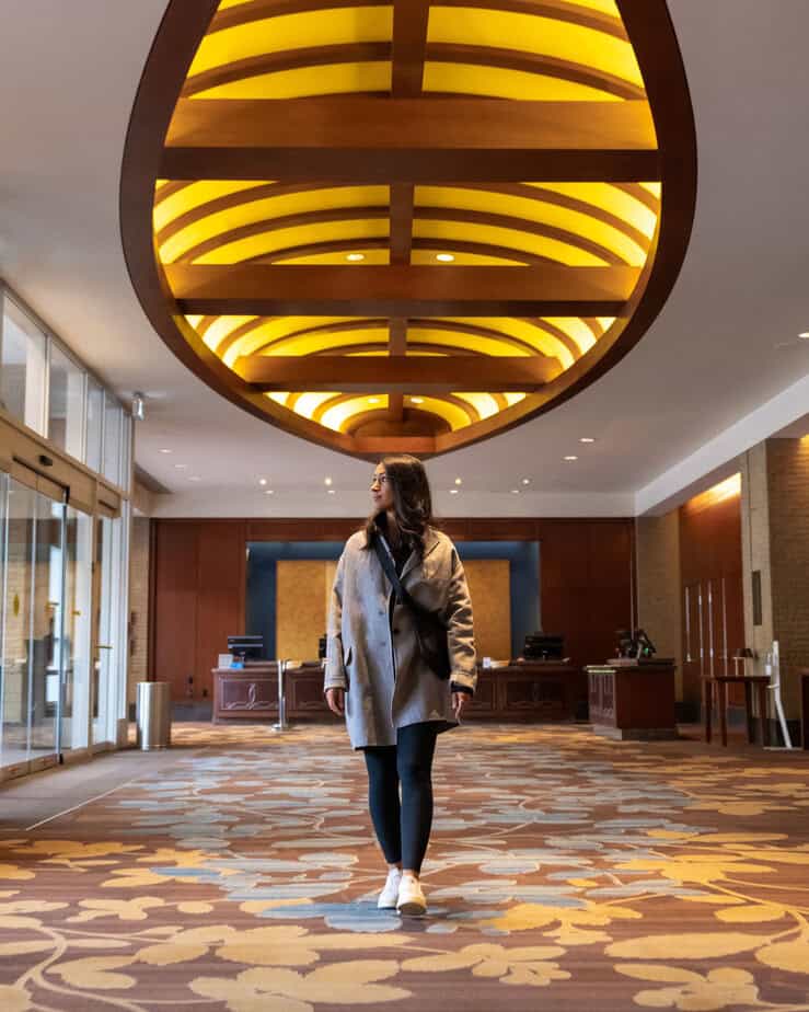 Friendly, modest, reserved, with a lot to offer behind the scenes – just like Canadians in general, Hyatt Regency Calgary Downtown makes a great hotel hideout. Take the lobby for example. That gigantic canoe shaped light fixture and the map of the fur trade routes behind the reception desk are not so subtle nods to Canada’s history. So are the 60 foot high sandstone walls in the soaring lobby. They aren’t just a decorative feature. They’re a real part of Calgary’s history.